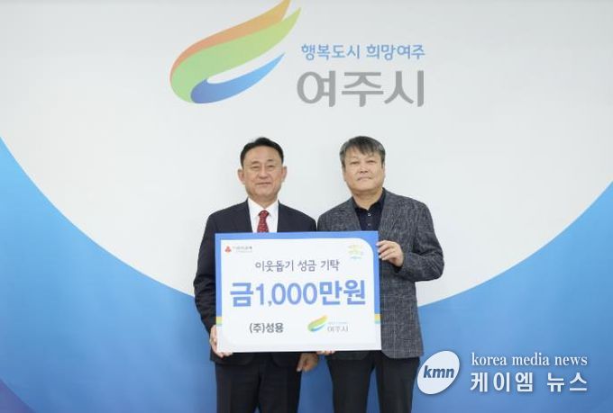 (케이엠뉴스) 지난 10일 오화진 ㈜성용 대표는 여주시청을 방문하여 이웃돕기 성금 1,000만원을 기탁했다.