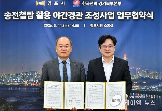 (케이엠뉴스) 김포시와 한국전력공사 경기북부본부가 11일 ‘송전철탑 활용 야간경관 조성사업’ 추진을 위한 업무협약을 체결했다. 이번 협약은 송전철탑을 활용한 야간경관 랜드마크 조성을 통해 도시 환경과 전력 설비에 대한 이미지를 개선하고 시민들에게 새로운 볼거리를 제공하기 위해 마련됐다.
