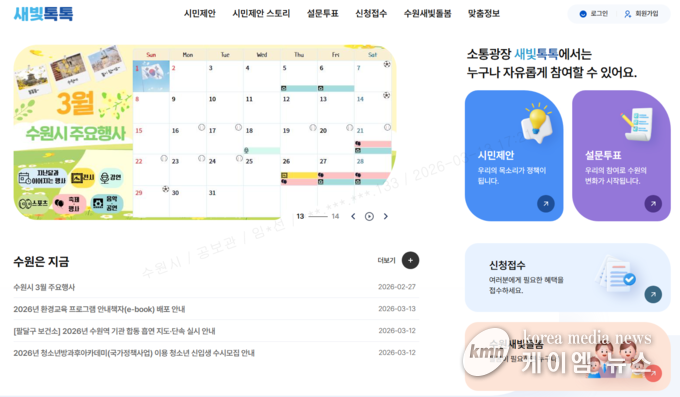 수원특례시 관계자는 “새빛톡톡을 활용해 다양한 시민 의견을 시정에 반영하고, 시민과 함께 수원을 만들어 나갈 것”이라며 “시민의 의견에 귀 기울이며 시민 삶의 질을 높이기 위해 노력하겠다”고 말했다.