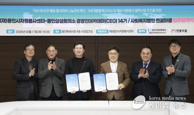 (케이엠뉴스) 용인특례시는 17일 시청 접견실에서 용인시자원봉사센터가 용인상공회의소 경영인 아카데미(CEO) 14기와 사회복지법인 연꽃마을과 각각 업무협약을 체결했다고 18일 밝혔다.
