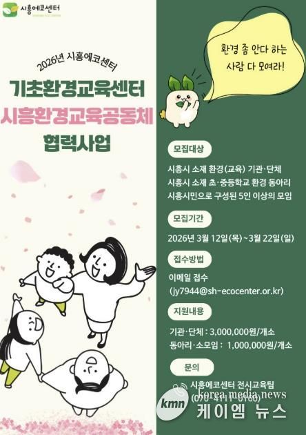 (케이엠뉴스) 시흥시는 지역 공동체 간 협력을 바탕으로 환경교육을 활성화하고, 환경교육 네트워크를 강화하기 위해 ‘2026년 기초환경교육센터-시흥환경교육공동체 협력사업’을 추진한다.