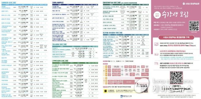 (케이엠뉴스) 수원특례시는 3월 25일 오전 10시부터 수원시 평생학습관 2026년 2분기 프로그램 수강생을 모집한다.