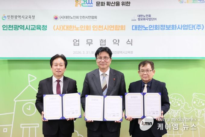 (케이엠뉴스) 인천광역시교육청은 31일 (사)대한노인회 인천광역시연합회, 대한노인회 정보화사업단과 ‘읽걷쓰 시민문화 확산을 위한 업무협약’을 체결했다.