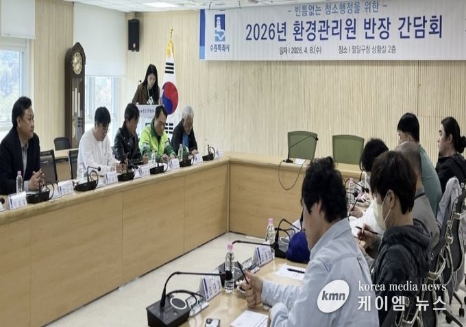 (케이엠뉴스) 수원시 팔달구는 지난 8일, 관내 각 동 행정복지센터 환경관리원 반장들과 간담회를 가졌다.