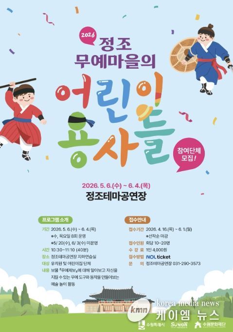 (케이엠뉴스) 수원문화재단 정조테마공연장의 대표 예술교육 프로그램 '정조무예마을의 어린이 용사들'의 상반기 교육이 접수 마감되며 큰 호응을 얻고 있다.
