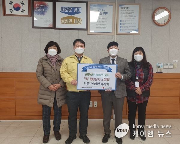(케이엠뉴스) 안중 야심잔기지떡에서는 안중읍행정복지센터를 5일 방문해 어려운 이웃을 위해 잔기지떡 100상자를 전달했다.