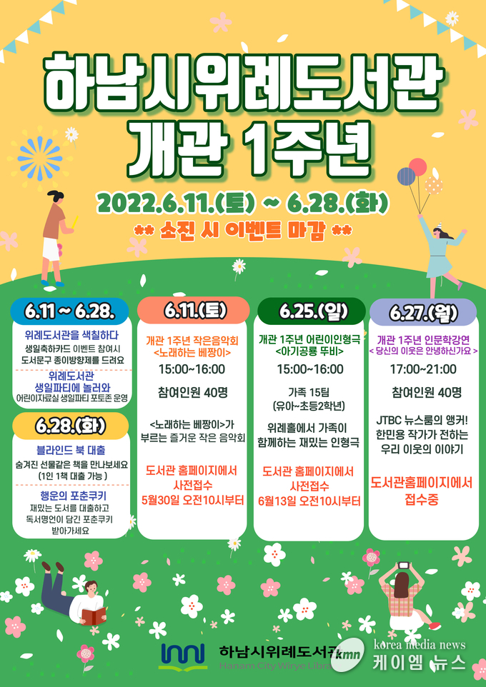 하남시위례도서관이 개관 1주년을 맞아 시민들과 함께 축하하고 즐길 수 있는 다양한 독서문화 행사를 운영한다.