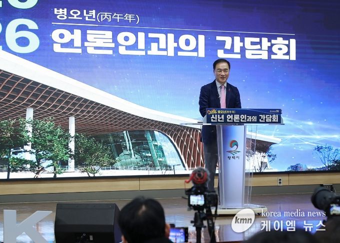 (케이엠뉴스) 평택시가 2026년 병오년을 맞아 신년 언론인 간담회를 19일 열어 새해 주요 시정 방향을 밝혔다. 이번 간담회에는 100여 명의 언론인과 정장선 평택시장을 비롯한 간부 공무원이 참석했으며, 주요성과 발표, 2026년 주요 시책 설명, 질의응답 순으로 진행됐다.
