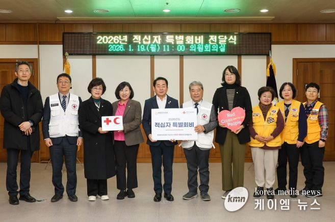 (케이엠뉴스) 의정부시의회는 19일 의원회의실에서 대한적십자사 경기도지사(회장 이재정)에 ‘2026년도 적십자 특별회비’를 전달했다.
