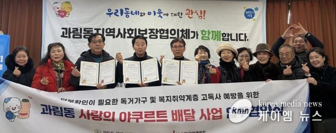 (케이엠뉴스) 시흥시 과림동 지역사회보장협의체는 지난 1월 19일 ㈜한국야쿠르트 역곡점과 복지 취약계층 안부 확인을 위한 ‘사랑의 요구르트 배달’ 사업 추진 업무협약을 체결했다.