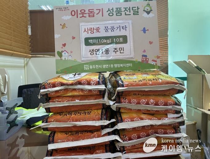 (케이엠뉴스) 동두천시 생연1동 행정복지센터는 지난 16일 주민으로부터 어려운 이웃에게 따뜻한 나눔을 전하고 싶다며 쌀(10kg) 10포를 기부받았다고 밝혔다.