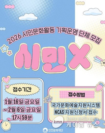 (케이엠뉴스) 인천문화재단은 시민문화활동 활성화를 위해 시민주도형 문화프로젝트를 기획운영할 인천소재 단체를 공개 모집한다.
