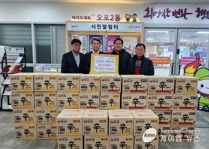 (케이엠뉴스) 광주시 매산1통 기업인협의회는 20일 오포2동 행정복지센터를 방문해 100만 원 상당의 라면을 기탁하며 지역사회 나눔을 실천했다.