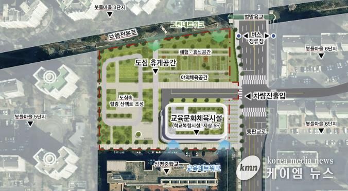 수립된 기본 구상안에는 연면적 약 15,000㎡ 규모의 교육·문화·체육시설을 중심으로 도서관, 수영장, 문화센터, 주차장을 조성하고, 편익시설과 산책로가 어우러진 도심 휴게공간을 함께 마련하는 내용이 담겼다.
