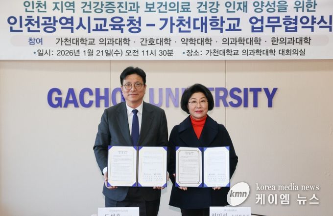 (케이엠뉴스) 인천광역시교육청은 21일 가천대학교에서 ‘가천의료융합교육 및 연구협의체(G-MERCI)’와 보건·의료 분야 업무협약을 체결했다.