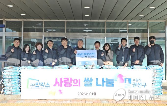 (케이엠뉴스) 수원시 권선구는 21일 ㈜인익스에서 설 명절을 맞이하여 후원한 백미(10kg) 100포에 대한 전달식을 진행했다.