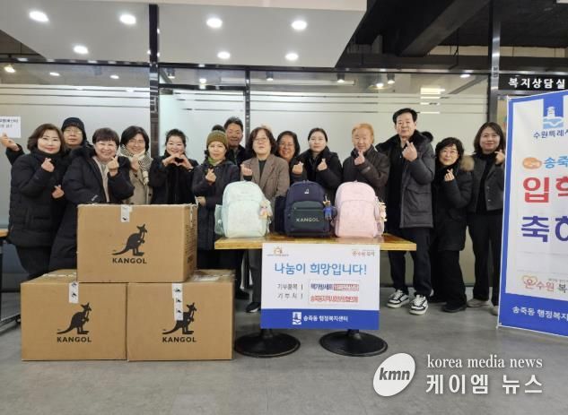 (케이엠뉴스) 수원시 장안구 송죽동 지역사회보장협의체가 지난 21일 송죽동 행정복지센터에서 2026년 초등학교 입학을 앞둔 저소득 가정 아동 9명을 대상으로 ‘입학아동 책가방 지원 사업’을 추진했다.