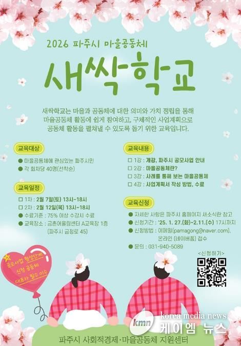 아울러 시는 마을미디어형과 기본사회형 지정공모를 신설해 지원 분야를 확대했으며, 마을공동체지원센터를 통해 2월 23일까지 사업계획서 작성을 지원하는 개별 자문도 병행할 예정이다. 신청은 파주시 사회적경제·마을공동체 지원센터 누리집에서 가능하다.