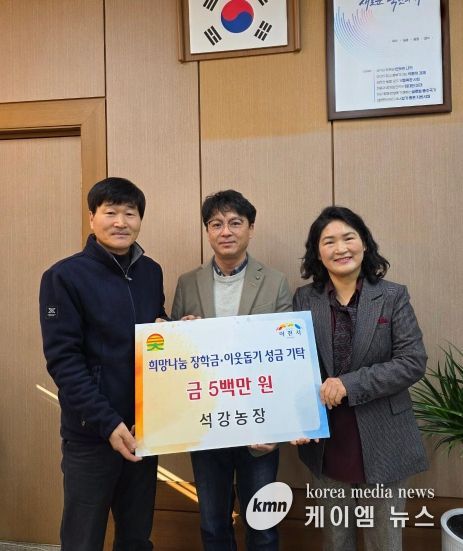 (케이엠뉴스) 이천시 대월면 석강농장은 1월 27일 대월면 행정복지센터를 방문해 저소득 가정 대학 신입생들을 위해 희망나눔 장학금 300만 원과 이웃돕기 성금 200만 원을 전달했다.