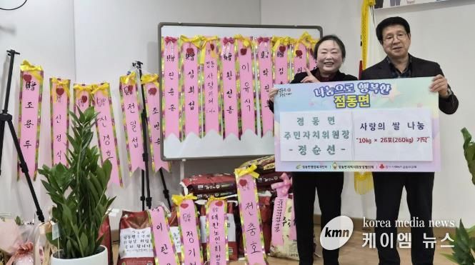이번에 기부된 쌀은 정순선 신임 주민자치위원장이 취임을 축하받으며 화환 대신 받은 백미로, 축하의 마음을 개인에 머무르지 않고 지역사회와 함께 나누고자 하는 뜻에서 기탁하게 됐다.
