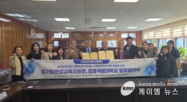 (케이엠뉴스) 경기도안성교육지원청은 2026년 1월 28일, 경기도안성교육지원청에서 한경국립대학교와 함께 안성 관내 다문화교육 활성화 및 이주배경학생 역량 강화를 위한 업무협약(MOU)을 체결했다.
