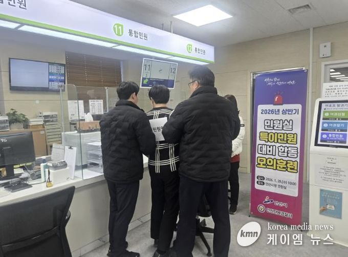 (케이엠뉴스) 안산시는 지난 28일 오전 시청 민원실에서 특이 민원 발생 상황에 대비한 비상 대응 모의훈련 및 출입제한·퇴거 조치 교육을 실시했다고 29일 밝혔다.