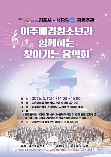이번 음악회는 김포시와 KBS 아나운서실이 지난해 12월 체결한 이주배경 청소년의 사회 적응지원, 상호문화도시 운영 활성화를 위한 업무협약(MOU)의 후속 사업이자 2026년 새해를 여는 첫 협력 행사로 다양한 문화적 배경을 지닌 청소년과 그 가족들, 지역주민이 음악과 강연을 통해 함께 소통하고 공감하는 열린 문화의 장을 마련하고자 기획됐다.