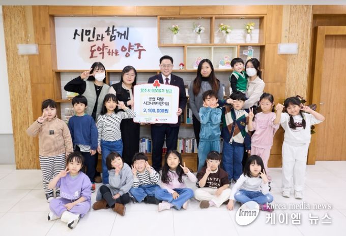 (케이엠뉴스) 양주시는 29일 공립 대방시그니처어린이집으로부터 이웃돕기 성금 210만 원을 기탁받았다고 밝혔다.