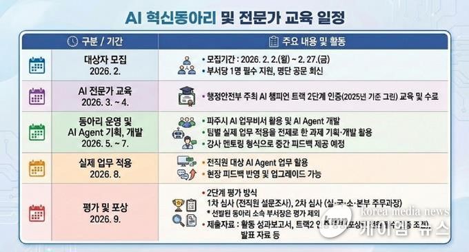시는 전 부서별 대표 직원 84명이 참여하는 ‘인공지능(AI) 혁신동아리’를 구성하고, 오는 2월부터 9월까지 8개월간 본격적인 운영에 들어간다.
