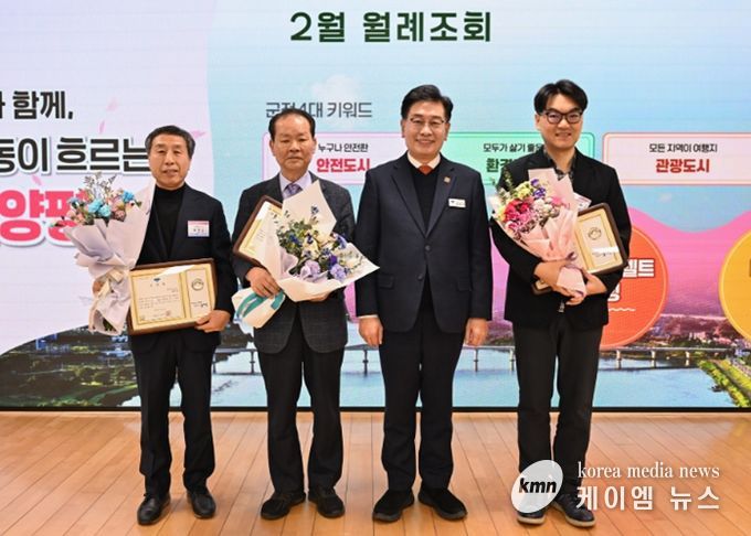 (케이엠뉴스) 양평군은 2일 군청 대회의실에서 열린 2월 중 월례조회에서 일상 속 위급한 상황에서 이웃의 생명과 안전을 지킨 선행 군민 3명에게 표창을 수여했다.