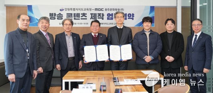 (케이엠뉴스) 강원특별자치도교육청은 2일 오후 3시 본청 교육감실에서 원주문화방송(주)(원주MBC)과 방송 콘텐츠 제작 협력을 위한 업무협약(MOU)을 체결했다.