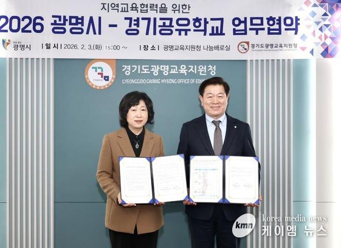 (케이엠뉴스) 광명교육지원청과 광명시는 2월 3일, 광명교육지원청 나눔배로실에서 지역사회 교육 자원을 연계한 지역교육협력 체계 구축 및 ‘경기공유학교’ 운영 활성화를 위한 업무협약을 체결했다.