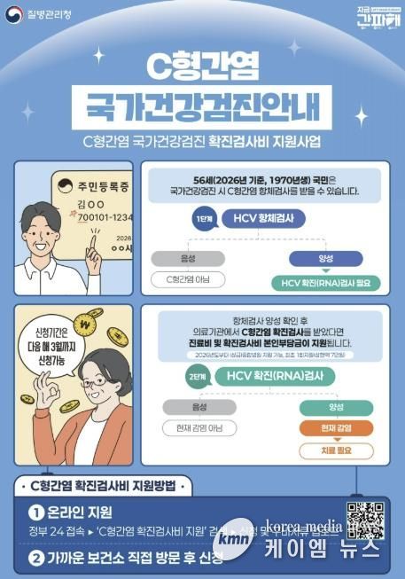 (케이엠뉴스) 부천시는 국가건강검진에서 C형간염 항체 양성 판정을 받은 56세(1970년생) 시민을 대상으로 C형간염 확진검사 비용을 지원한다. 이번 사업은 C형간염 항체 양성자에 대한 확진검사비를 지원해 조기 치료를 유도하고 검진의 실효성을 높이기 위해 추진된다.