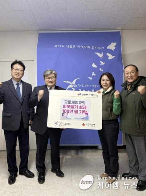 (케이엠뉴스) 구리시 교문1동 행정복지센터는 설 명절을 맞아 지난 2월 3일, 교문제일교회로부터 이웃돕기 성금 100만 원을 기탁받았다.