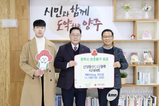 (케이엠뉴스) 양주시는 지난 3일 관내 신성통상㈜ 리치마트가 설 명절을 맞아 양주시에 백미 300포(약 1,100만 원 상당)를 기부했다고 밝혔다.