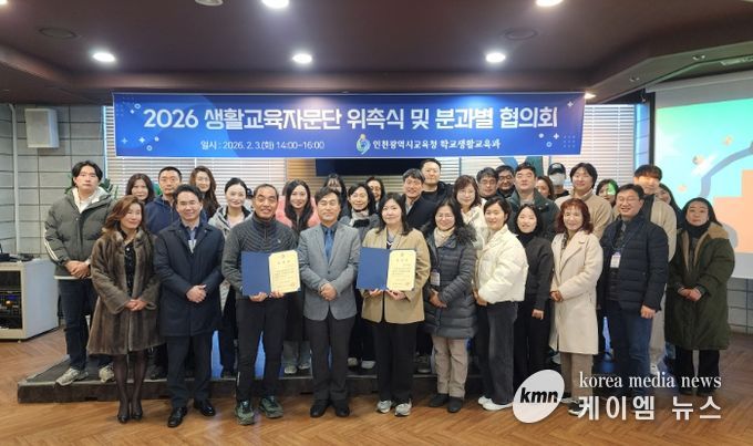 (케이엠뉴스) 인천광역시교육청은 3일 샤펠드미앙에서 생활교육자문단 50명을 대상으로 ‘2026년 위촉식 및 분과별 협의회’를 개최했다.