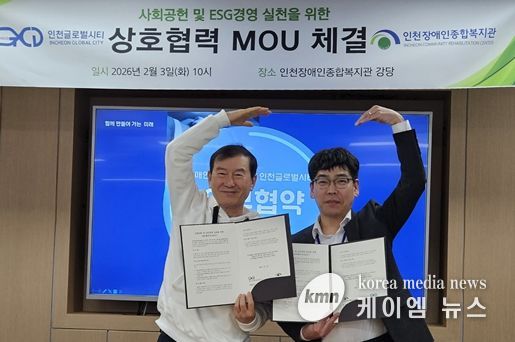 두 기관은 지난 3일 인천시장애인종합복지관에서 ‘사회공헌 및 ESG경영 실천 업무협약’을 하고 함께 장애인 지역사회 자립 지원과 복지 사각지대 해소, 맞춤형 사회공헌 프로그램 운영 등을 추진하는 데 뜻을 모았다.