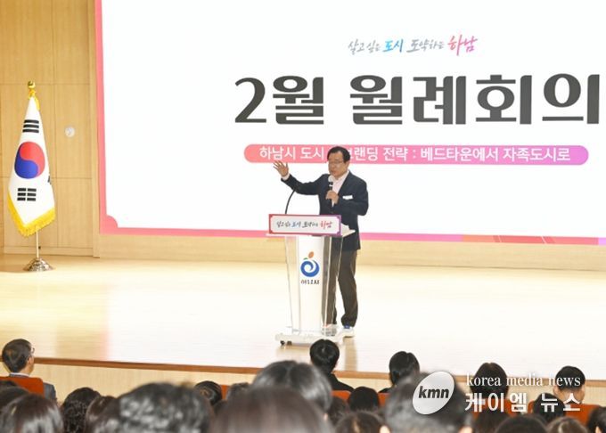 (케이엠뉴스) 하남시는 4일 별관 대강당에서 올해 첫 월례회의를 개최하고, 캠프콜번 개발 본격화 등 시정 주요 성과를 공유하며 ‘글로벌 경제 중심 도시 하남’을 향한 비전을 제시했다.