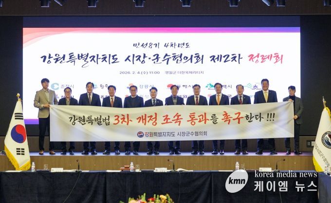 (케이엠뉴스) 강원특별자치도시장군수협의회는 2026년 2월 4일 오전 11시, 영월군 ‘더 한옥헤리티지 영빈관’에서 민선8기 4차년도 제2차 정례회를 개최하고 각 시·군의 주요 현안에 대하여 심의하고 대응책을 논의했다.