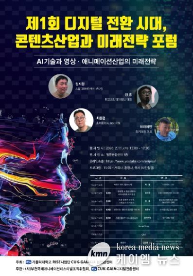 (케이엠뉴스) 제28회 부천국제애니메이션페스티벌은 가톨릭대학교 RISE사업단 CUK-GAIA디지털전환센터가 주최하고, BIAF와 CUK-GAIA디지털전환센터가 공동 주관하는 『디지털전환시대, 콘텐츠산업과 미래전략』 포럼을 오는 2월 11일 개최한다.