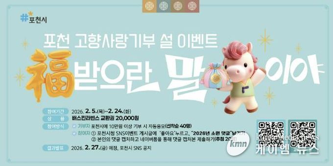 포천시 관계자는 “이번 이벤트가 고향사랑기부제에 대한 시민 관심을 높이고, 새해 소망을 함께 나누는 계기가 되길 바란다”며 “시민 모두가 따뜻하고 행복한 명절을 보내시길 기원한다”고 말했다.