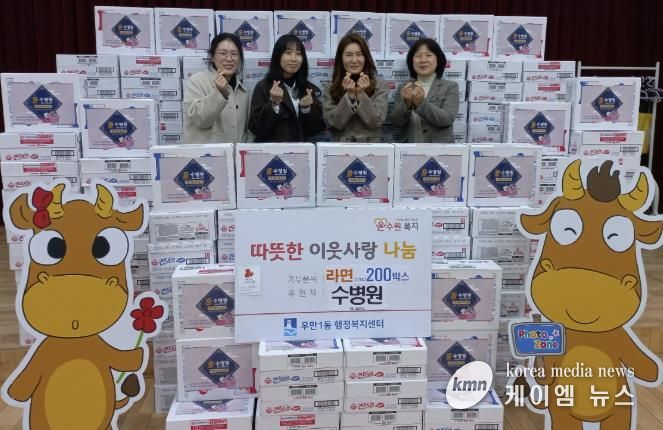 (케이엠뉴스) 수병원은 지난 4일, 설 명절을 맞아 어려운 이웃들을 위해 라면 200박스를 우만1동 행정복지센터에 기부하며 이웃사랑을 실천했다.