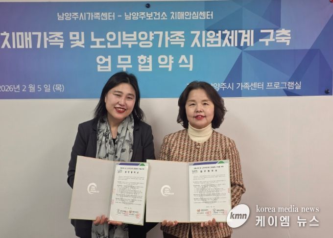 (케이엠뉴스) 남양주시는 5일 남양주보건소 치매안심센터가 치매환자 가족 지원 강화를 위해 남양주시가족센터와 업무협약을 체결했다고 밝혔다.