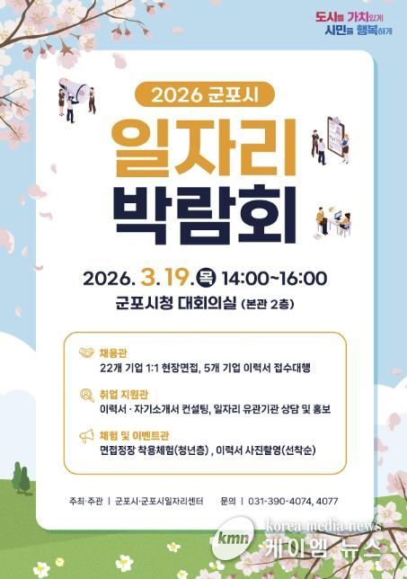 (케이엠뉴스) 군포시는 오는 3월 19일 오후 2시부터 시청 대회의실에서 ‘2026년 군포시 일자리 박람회’를 개최함에 따라 2월 10일부터 2월 27일까지 박람회에 참여할 기업체를 모집한다.
