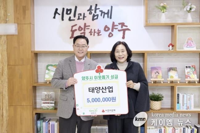(케이엠뉴스) 양주시가 지난 5일 태양산업으로부터 이웃돕기 성금 500만 원을 기탁받았다.