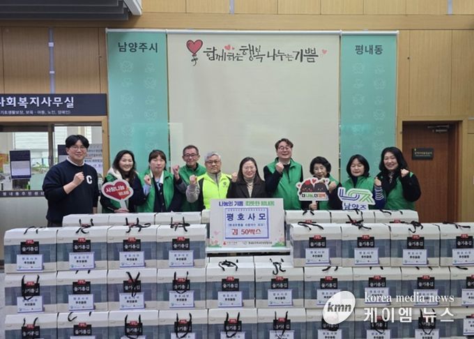 (케이엠뉴스) 남양주시는 지난 5일 평내호평을 사랑하는 모임이 설 명절을 맞아 김 선물세트 50박스를 평내동 지역사회보장협의체에 기탁했다고 6일 밝혔다.