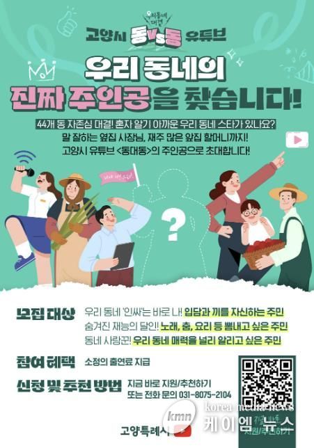 (케이엠뉴스) 고양특례시가 44개 동 주민들이 직접 주인공으로 참여하는 신규 유튜브 예능 콘텐츠 ‘동대동(우리 동네 대결)’의 본격적인 제작을 앞두고 ‘우리 동네 대표 선수’를 모집한다고 9일 밝혔다.