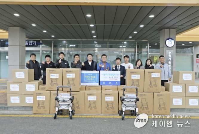 이날 전달식에서 수원남부 로타리클럽은 거동이 불편한 어르신들을 위한 실버카 20대와, 경제적 어려움을 겪는 청소년 10명에게 지원할 1년 치 위생용품을 기탁하며 따뜻한 마음을 전했다.