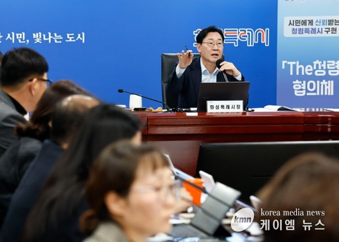 (케이엠뉴스) 화성특례시는 9일 시청 상황실에서 정명근 시장을 단장으로 실국장단 및 구청장 등 4급 이상 고위직 공무원으로 구성된 '더 청렴' 협의체 회의를 개최했다.