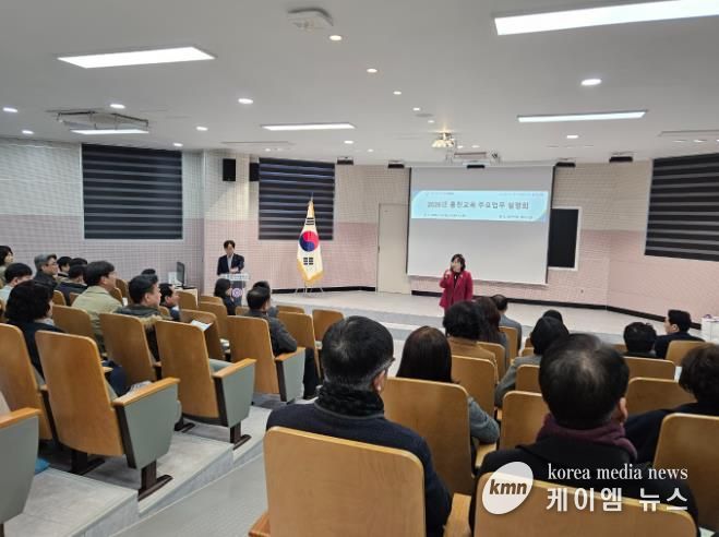 (케이엠뉴스) 홍천교육지원청은 2월 9일 10시 30분 홍천여자중학교 세미나실에서 홍천 지역 교(원)장, 교육지원청 직원을 대상으로 2026년 홍천교육 주요업무 설명회를 개최했다.